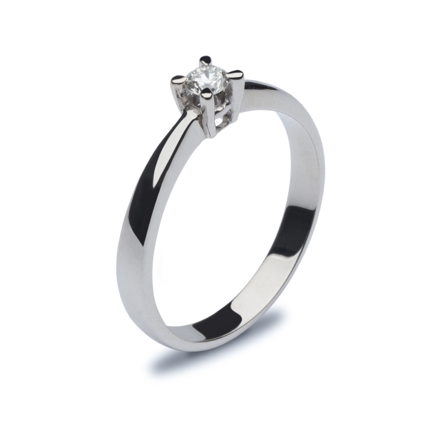 Solitario oro blanco 750 mm con diamante talla brillante.