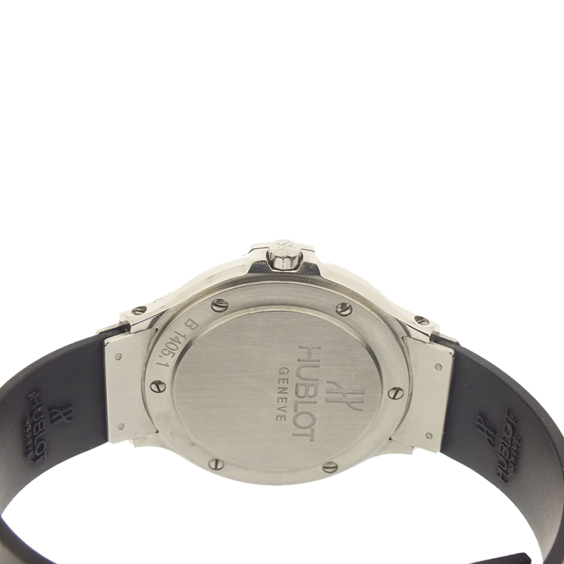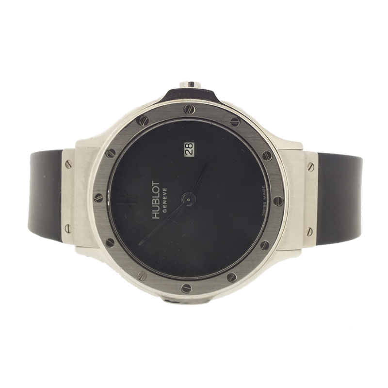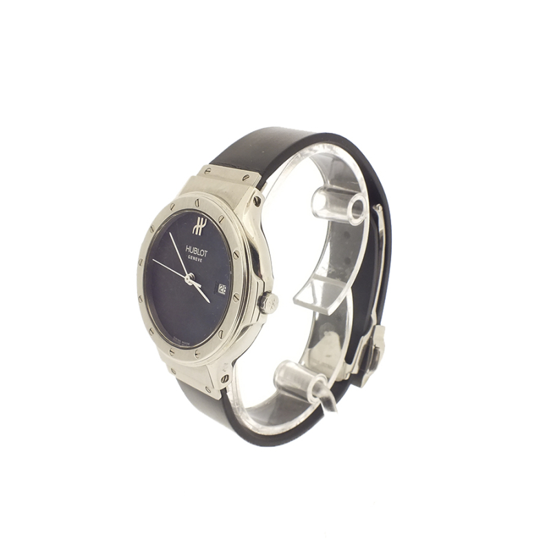 Cómodo y ligero reloj de señora en acero inoxidable con correa de caucho negro, maravillosa fusión de materiales que lo hacen un reloj elegante y atemporal.